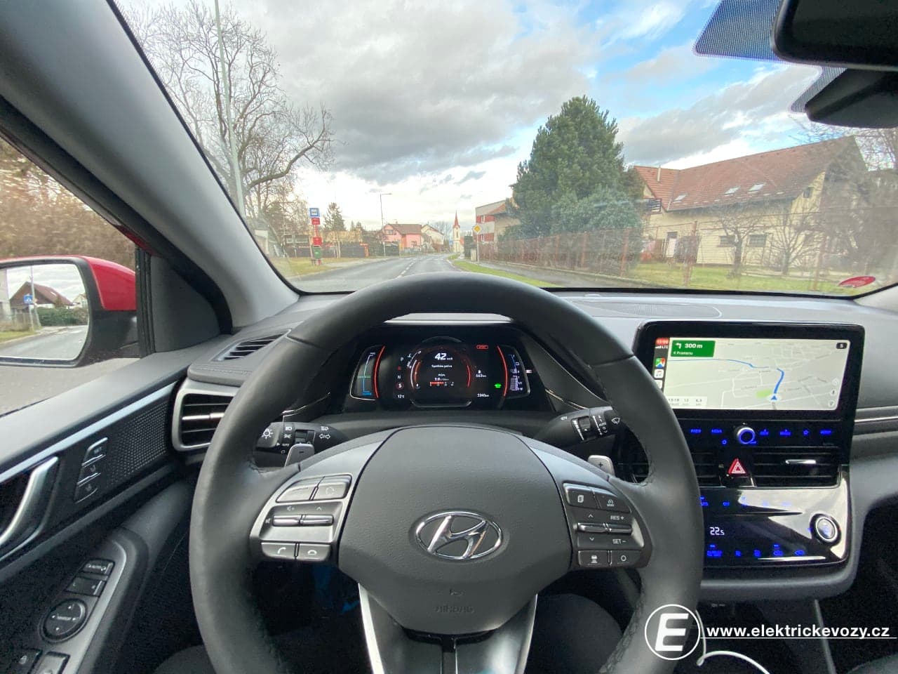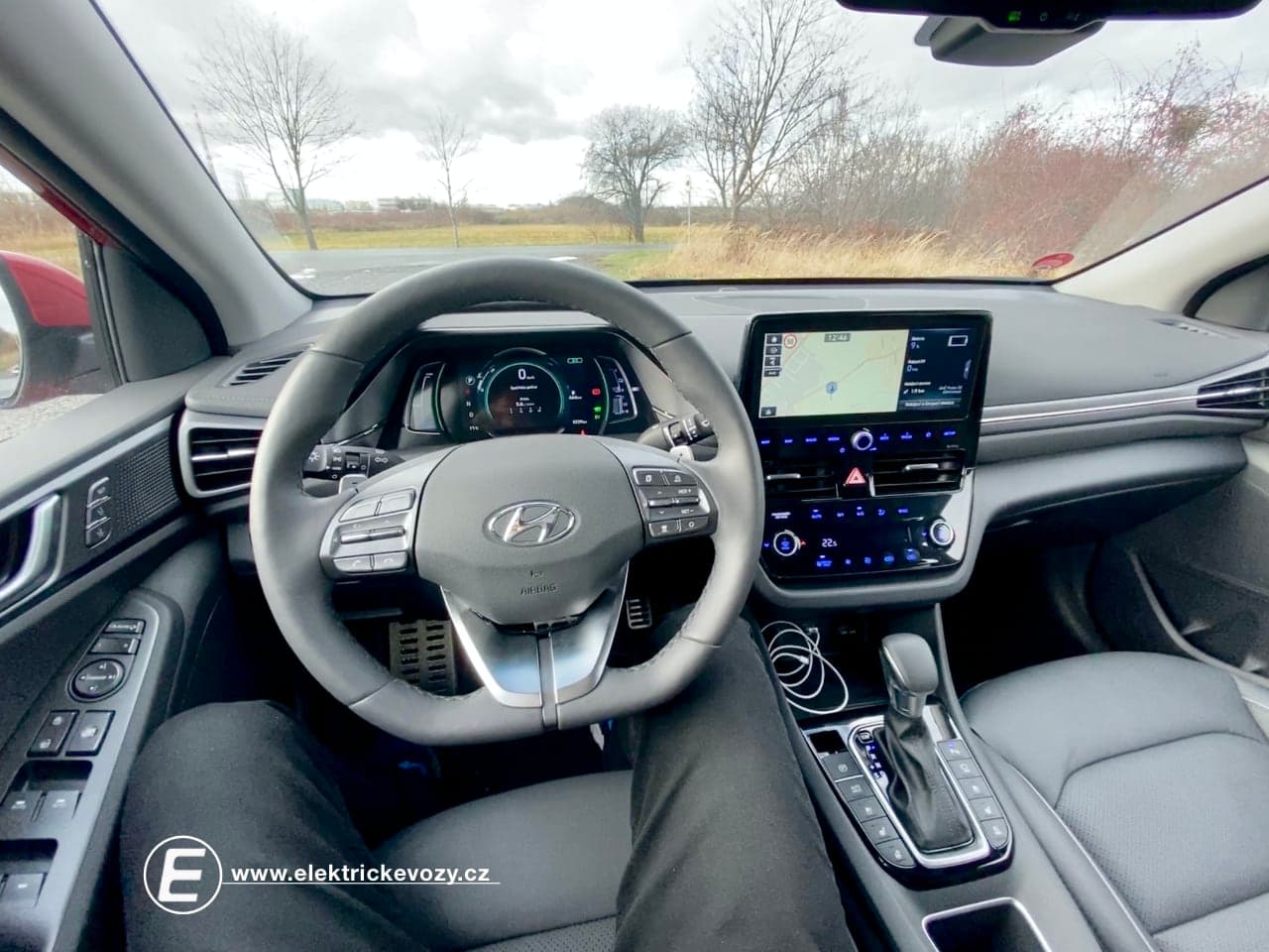 Že jde o ekologické auto, pak prozrazuje nejen tvar auta, ale také materiály, které se používají v interiéru. Hyundai se opět snažil využít recyklované nebo alespoň „eco-friendly“ materiály, ať už jde například o vnitřní část dveří z recyklovaného plastu s příměsí dřeva a sopečného kamene, koberečky a strop s příměsí cukrové třtiny, či metalickou barvu na některých komponentech se složkami extrahovanými ze sójového oleje. Co je však podle mě pro zákazníky možná mnohem důležitější, je design a praktičnost u téměř celého interiéru. Palubní deska, volant, sedadla,… to vše působí celkem kvalitně a zbytečně se neupatlává. Výjimkou je infotainment se zvětšeným 10″ dotykovým displejem a pod ním umístěnými senzorovými tlačítky, která jsou neustále zaprášená a upatlaná, navíc se poslepu těžko ovládají.