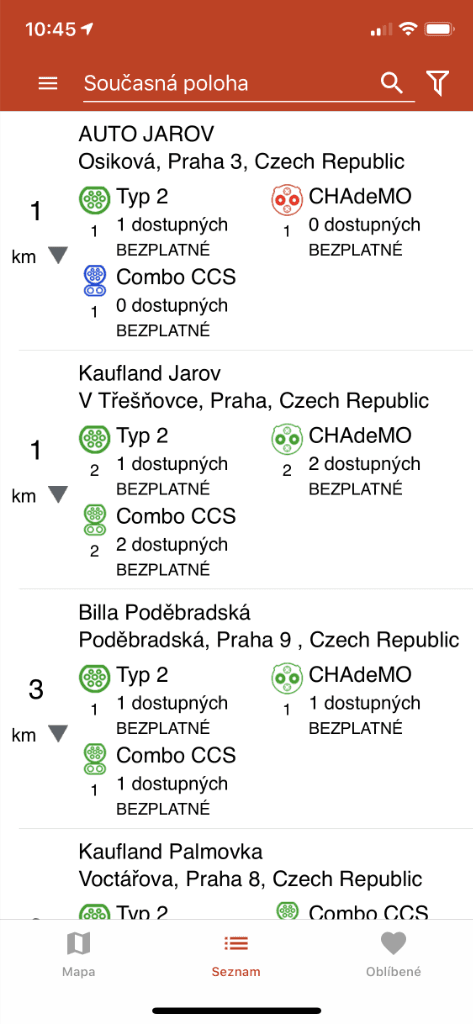 - detailní informace o každé dobíjecí stanici, včetně typu a maximálního výkonu, standardů dobíjecích konektorů, přístupnosti a provozní doby