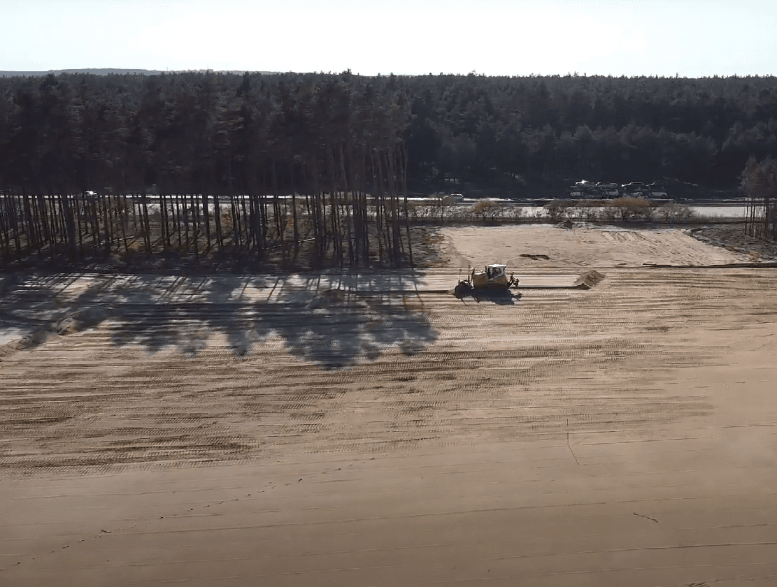 Dokonale vyčištěný terén od stromů na místě, kde ještě před půl rokem stál les. Tak to teď vypadá nedaleko Berlína, kde bude stát Gigafactory 4.