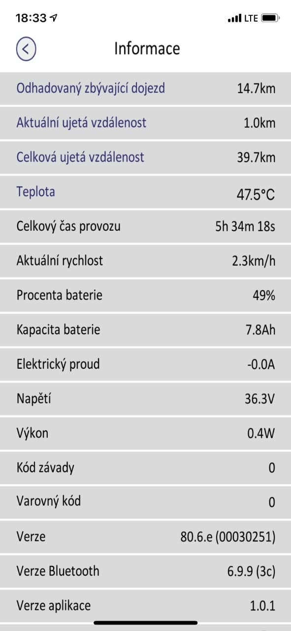 Všechno možné pak můžete šikovně sledovat přes aplikaci Sencor ve smartphonu, ať už máte Android nebo iOS. Přesně řečeno, pouze s výjimkou situace, kdy elektrokoloběžku nabíjíte. V takovém případě ji nelze zapnout a tedy ani mít přes Bluetooth 4.1 spárovanou s telefonem. Aplikace je kompletně v češtině a umí zobrazit všechny údaje, ať už jde o stav nabití, ujetou vzdálenost či dojezd, čas provozu, rychlost, atd. Chytře zní funkce pro zamknutí koloběžky, která má zamezit odcizení, nicméně když se na ni zloděj nedokáže rozjet, stále ji může odnést a tomu už tato funkce logicky nezabrání, takže stejně je potřeba koloběžku na veřejnosti raději klasicky zamykat se zámkem.