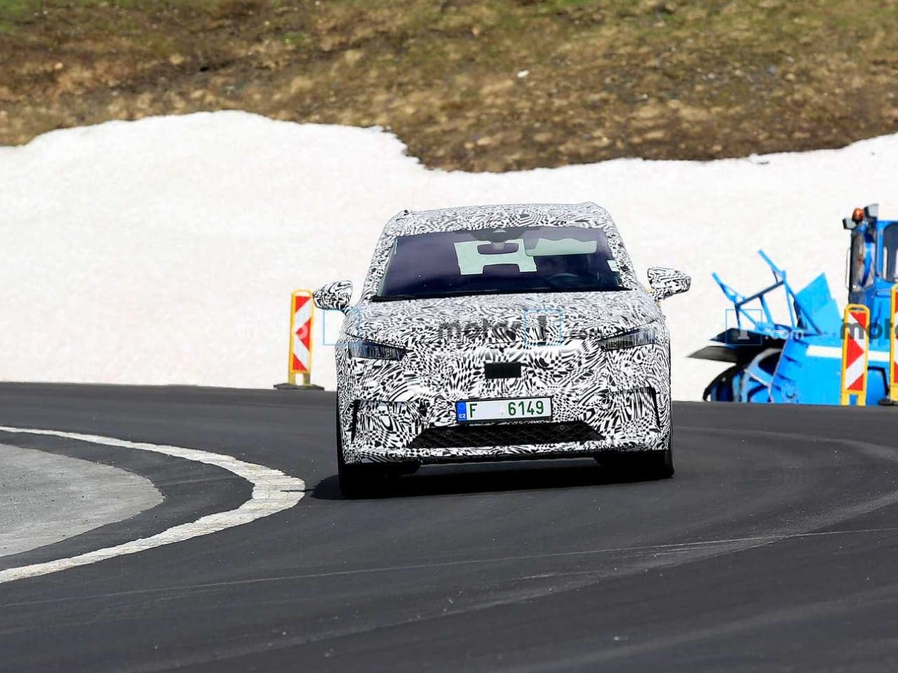 Mladoboleslavská automobilka však elektromobil testuje stále ještě v maskování. Tentokrát byl vůz spatřen někde v Alpách, kde zkoušel jízdu po serpentinách do kopce i s vozíkem, nebo naopak zkopce již bez využítí tažného zařízení.