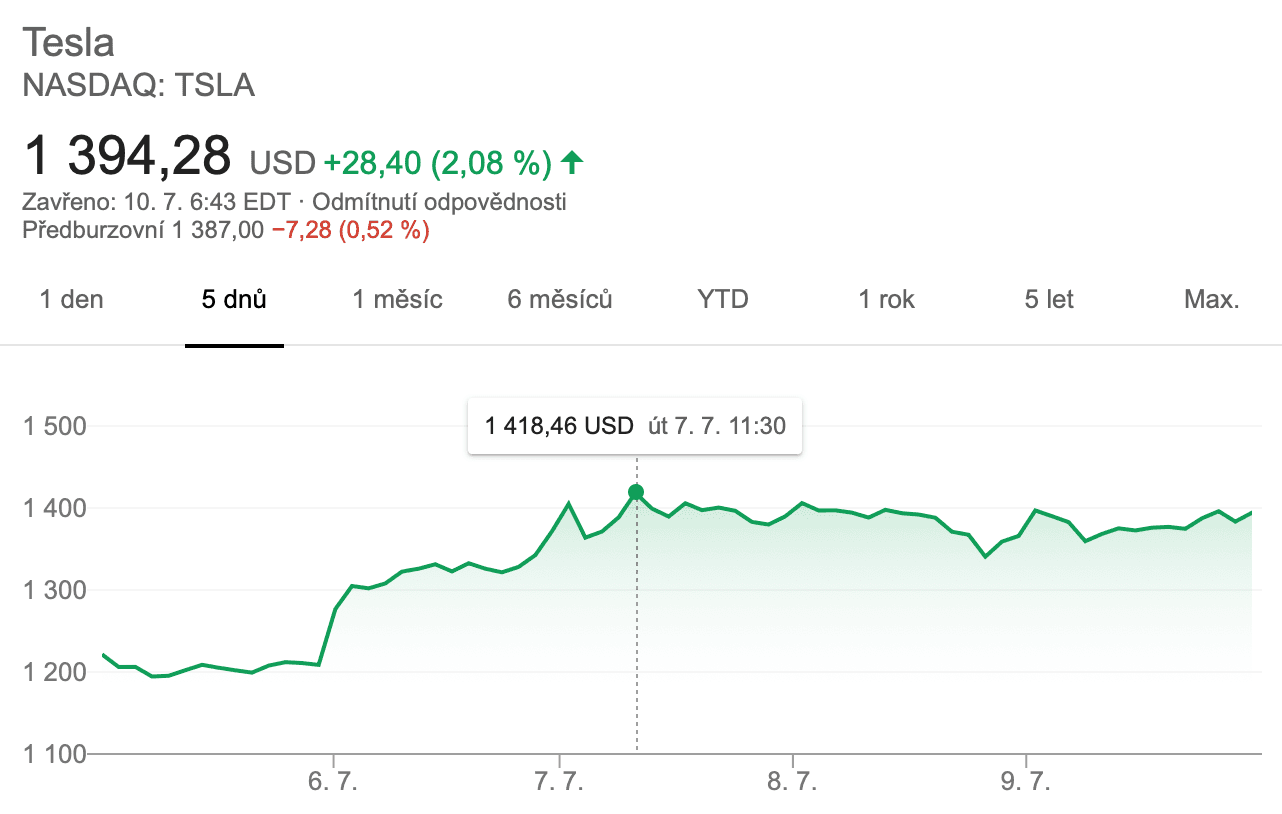 Bude jistě zajímavé sledovat, co se bude dít dál. Pokud Tesla dosáhne zisku i ve druhém čtvrtletí roku, znamenalo by to již čtyři po sobě jdoucí ziskové kvartály, což by nominovalo Teslu do indexu S&P500 a pak by nenásledovalo nic jiného než další raketový růst. Stejně tak se hodně čeká na zářijový Tesla Battery Day 2020, který může s cenou akcií hodně zahýbat. Samozřejmě nikdo ovšem dopředu neví, co přesně se stane a jaký bude vývoj.