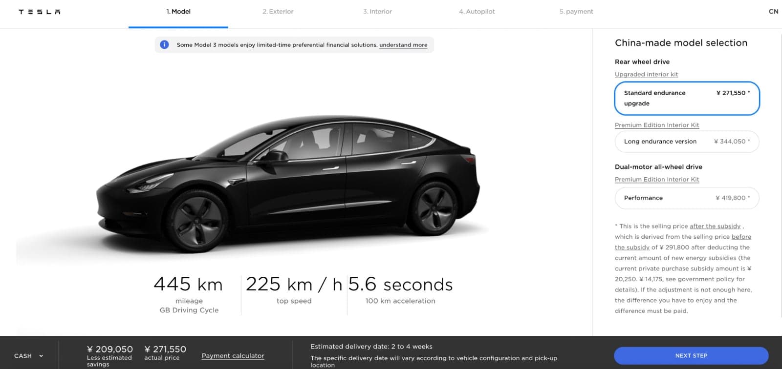 Nový Model 3 vycházel v Číně na nejméně 323 800 čínských juanů, ovšem před několika týdny v Číně snížili dotace o 10 % a nově na ně dosáhnou jen ekologická vozidla s cenou do 300 000 čínských juanů, takže Tesla měla smůlu. Spekulovalo se tedy, že by mohlo dojít ke zlevnění o necelých 10 %, aby se opět Model 3 kvalifikoval na získání dotační slevy.