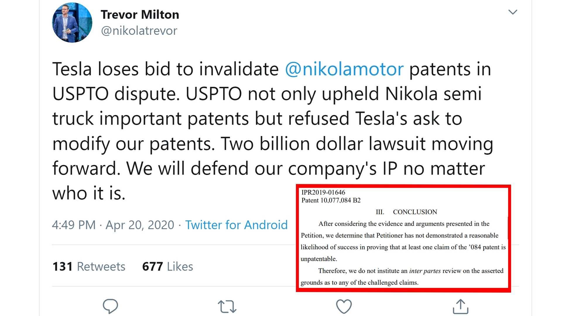 Soudní spory jsou mezi výrobci velmi běžnou záležitostí. Většinou se neřeší porušení patentů, ale spíše jak dostat z ostatních firem peníze. To však neplatí pro spor mezi Teslou a Nikola Motors.