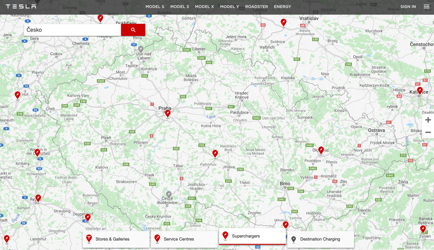 Na závěr ještě možná trocha spekulací. Jelikož v České republice prozatím nemáme tak hustou síť dobíjecích stanic, ať už těch přímo od Tesly nebo od jiných provozovatelů, jako jsou ČEZ, PRE, E.ON, či další firmy, je dost možné, že nejprve bude potřeba zlepšit dobíjecí infrastrukturu a až poté bude náš trh pro Teslu dostatečně zajímavý, aby zde otevřela konfigurátor na všechny své elektromobily, ale také aby zde postavila oficiální showroom. Do té doby zřejmě bude ČR spadat do kategorie zemí „other Europe“, které jsou zkrátka v určitých směrech pozadu.