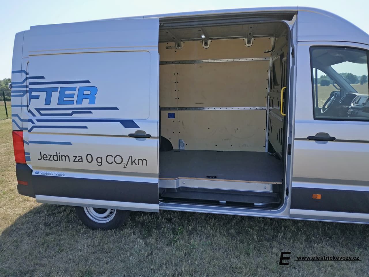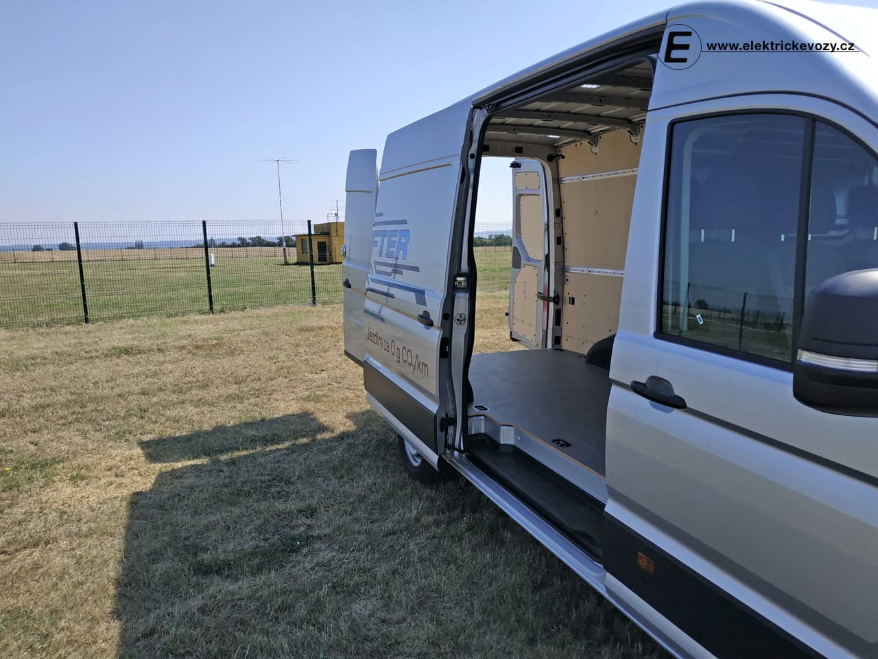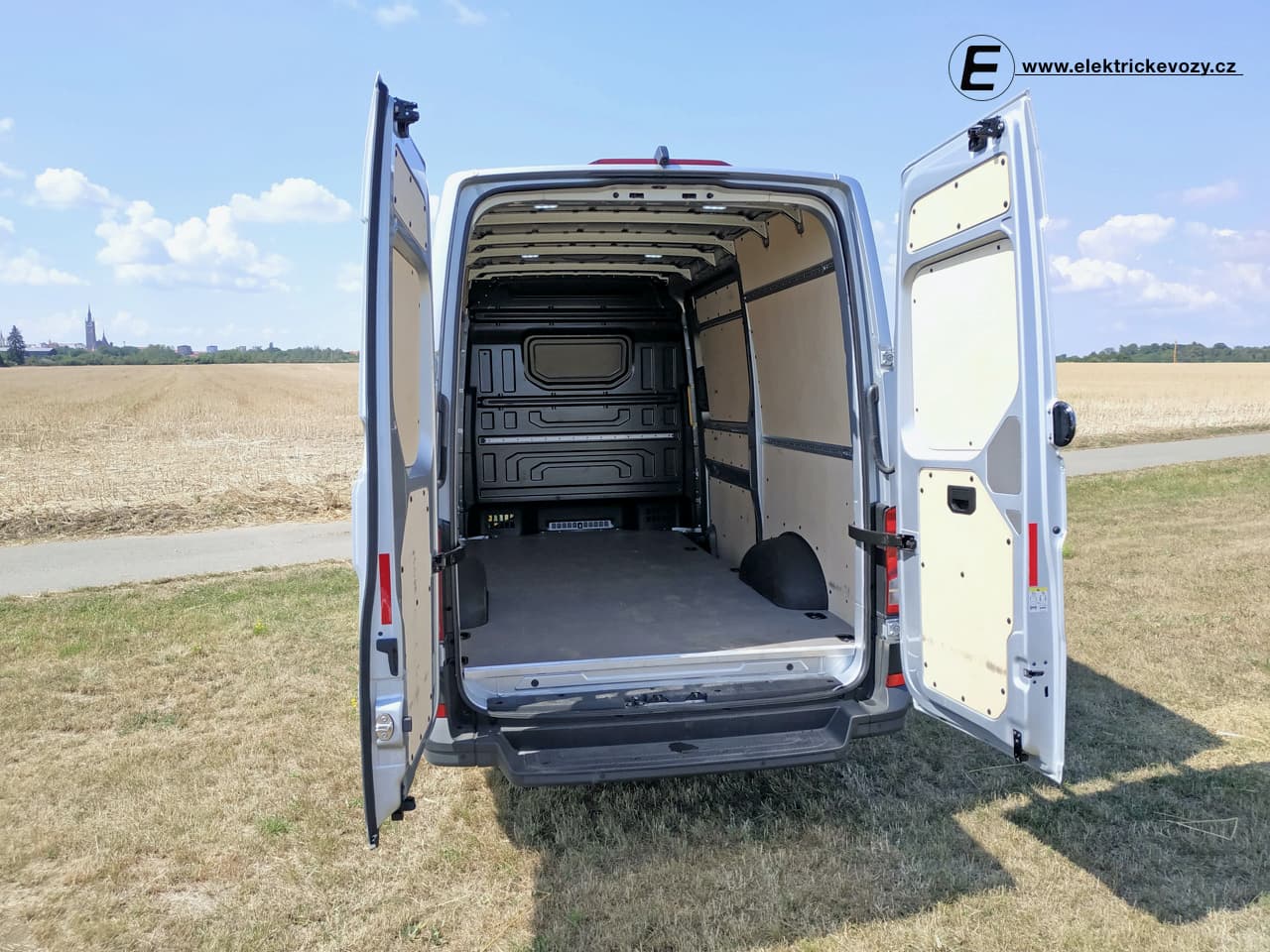 Než se pustím do další kapitoly našeho testu, nechám laskavého čtenáře ještě jednou nastoupit. Tentokráte však do zadní části vozu, tedy do nákladního prostoru. Jeho podlaha je totiž o zhruba 15 centimetrů vyšší, než je u Craftera se spalovákem. Důvod této změny je nasnadě – baterie. I tak je ale v nákladovém prostoru 10,7 krychlových metrů místa. Je osvětlen LED světýlky a přístup do něj je přes zadní křídlové dveře nebo boční posuvné.